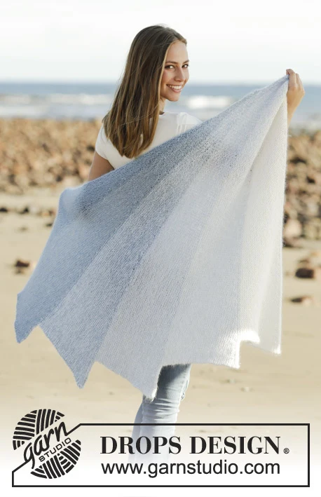 Sjal strikket i rille med vendinger og tone-på-tone striper i 1 tråd DROPS Alpaca og 2 tråder DROPS Kid-Silk .
