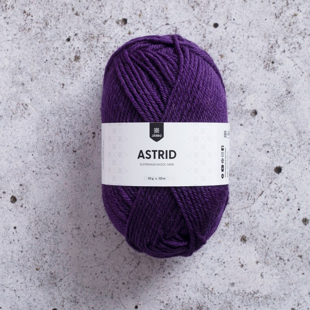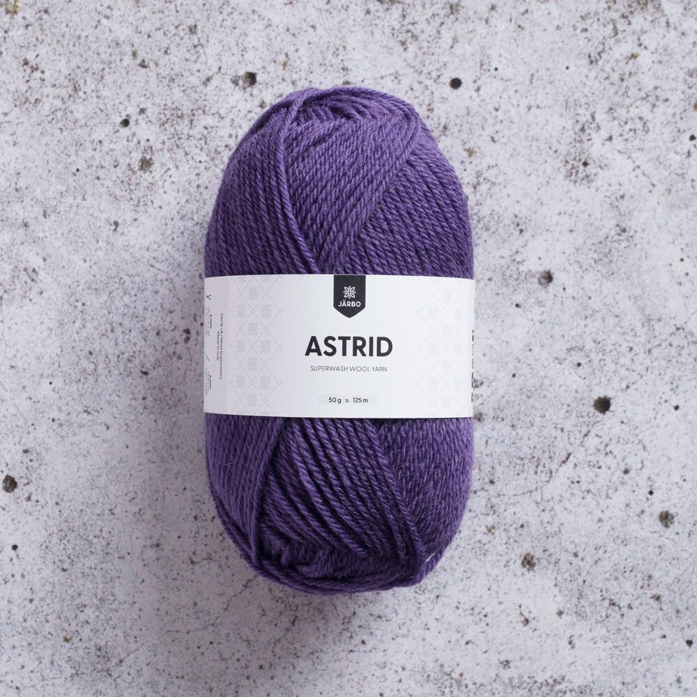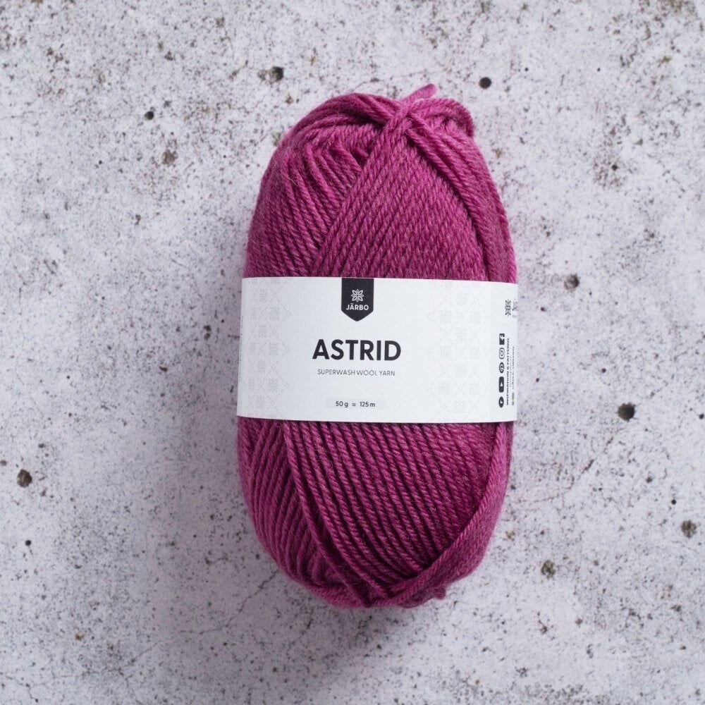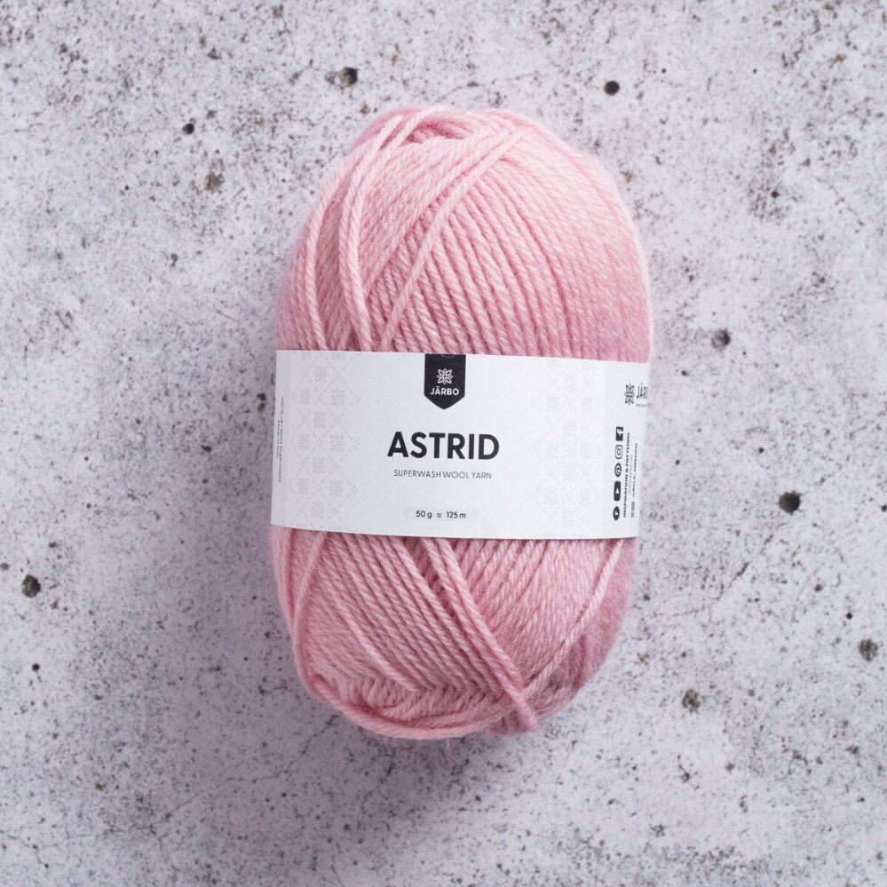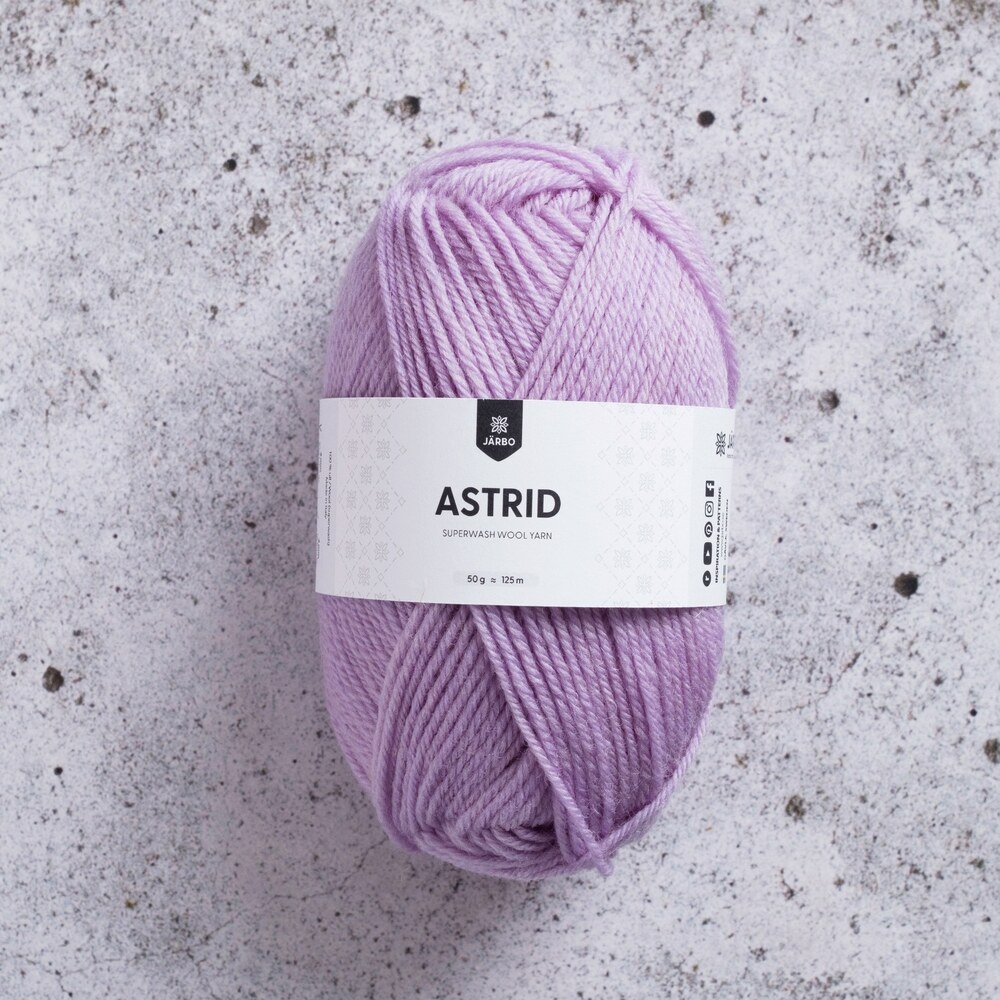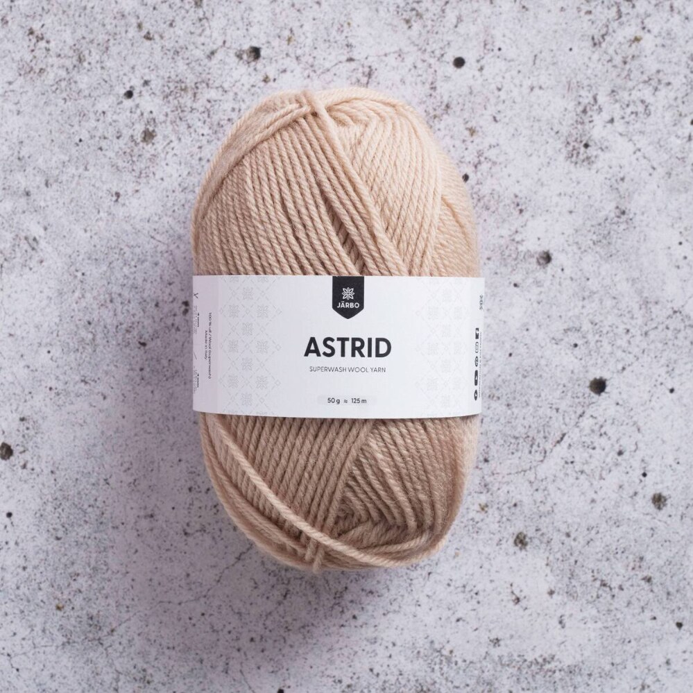 Järbo Astrid er et allsidig og slitesterkt ullgarn i 100% superwash-behandlet ull. Det tåler maskinvask og er derfor ideelt for både små og store prosjekter der enkel stell er viktig. Garnet har en rund og jevn struktur som gir et pent og ensartet maskebilde, både ved strikking og hekling.