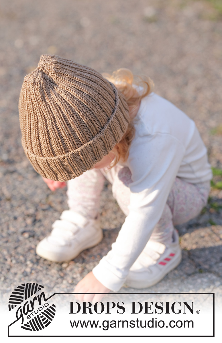 Strikket lue til baby og barn i DROPS Merino Extra Fine. Arbeidet strikkes nedenfra og opp i vrangbord. Størrelse 2 - 14 år.