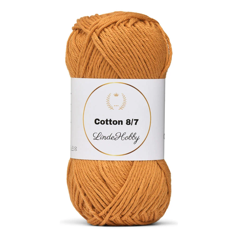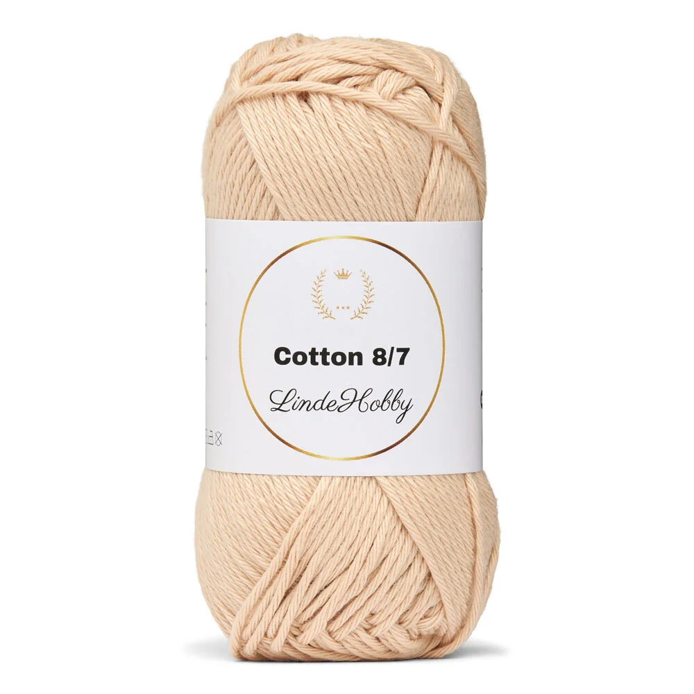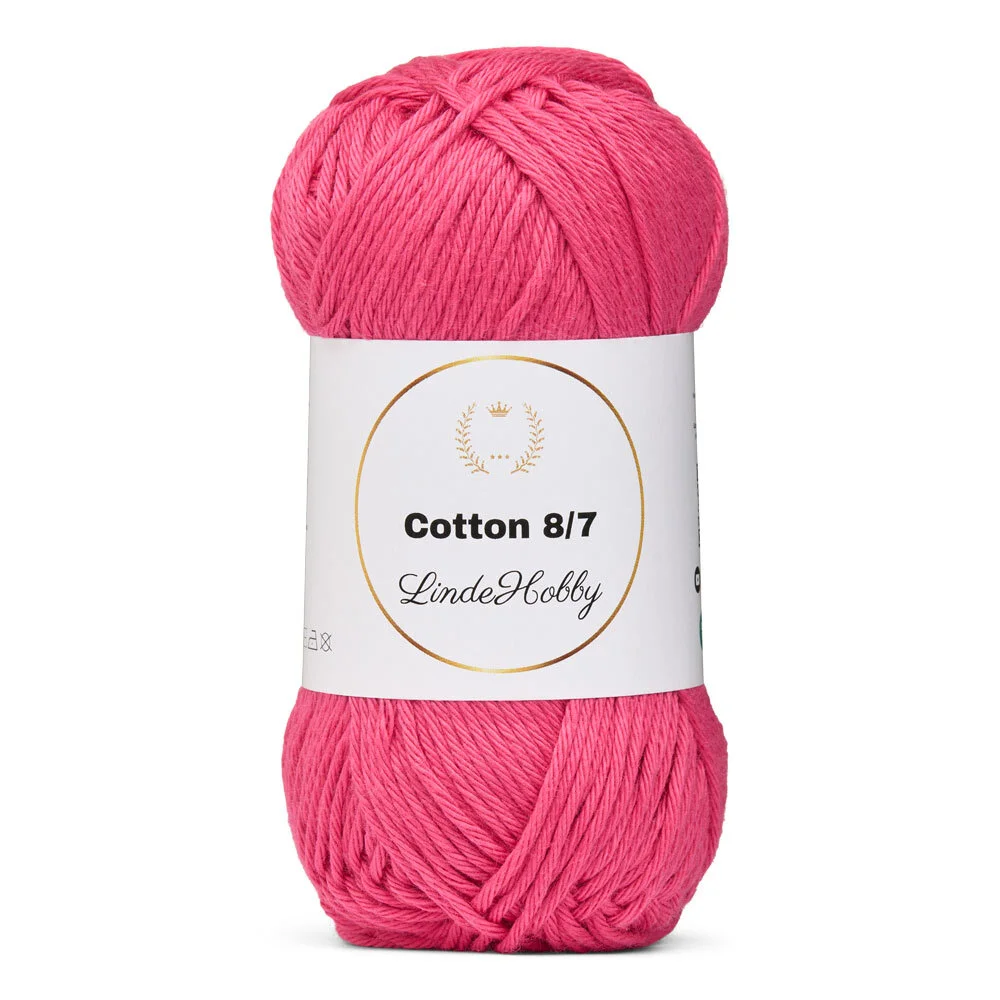 LindeHobby Cotton 8/7 er et klassisk garn i 100% bomull med en løpelengde på ca 90 meter pr 50 g. Garnet har en fast og jevn trådstruktur som gjør det enkelt og behagelig å jobbe med – enten du strikker eller hekler. Det er et populært valg blant både nybegynnere og erfarne, og finnes i et bredt utvalg av vakre farger.