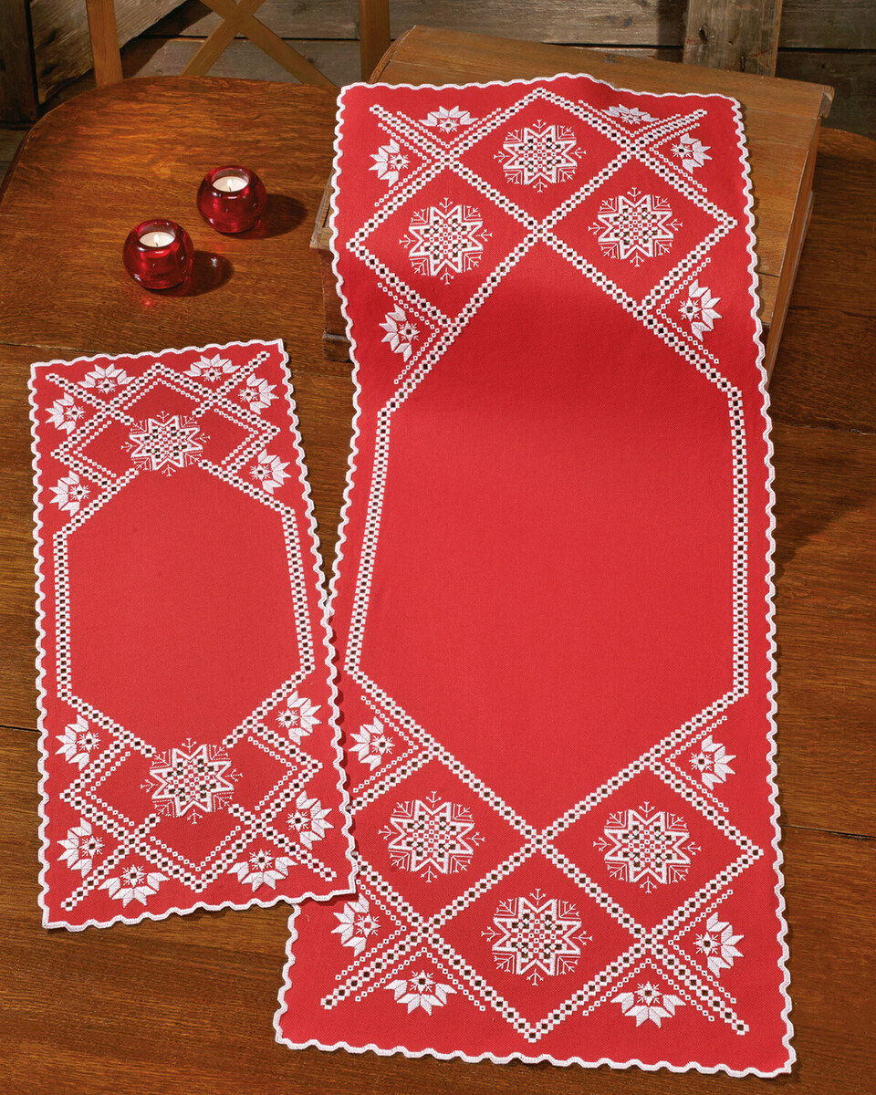 Broderisett Hardanger snøfnugg 27 x 68 cm