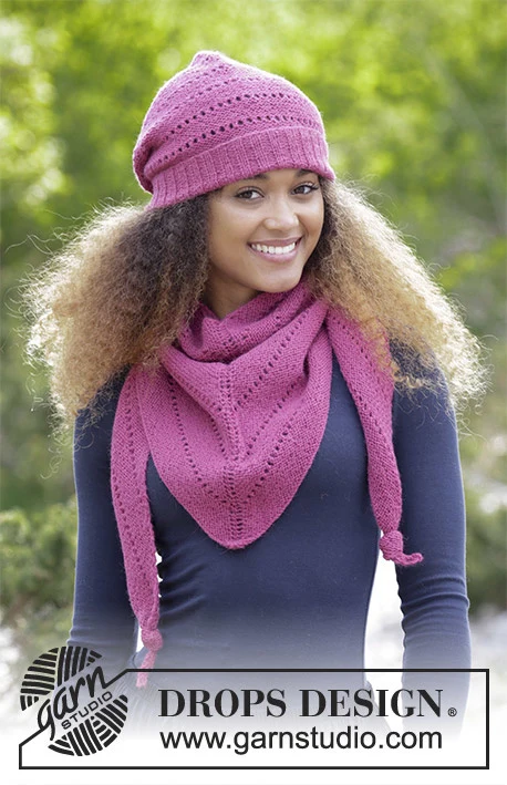 Settet består av: Strikket lue og sjal med rille og hullmønster. Settet er strikket i DROPS Baby Merino