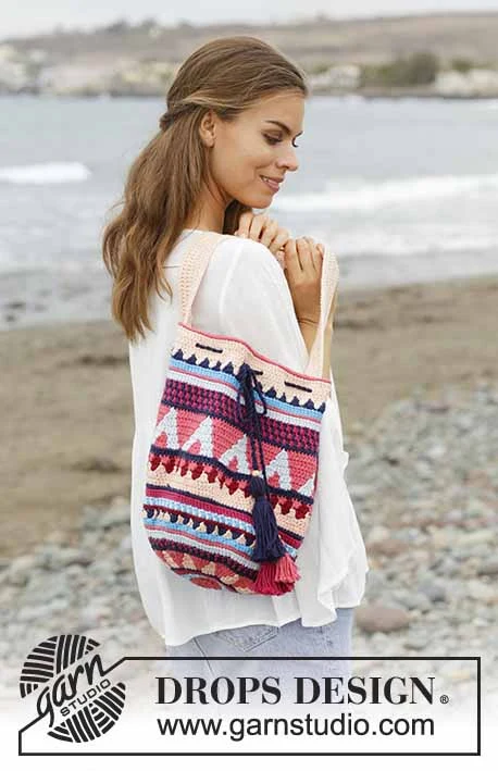 Heklepose med flerfarget mønster. Verket er heklet i DROPS Paris.