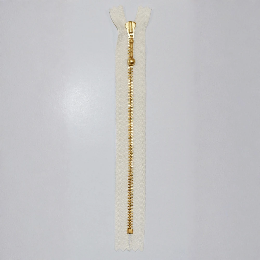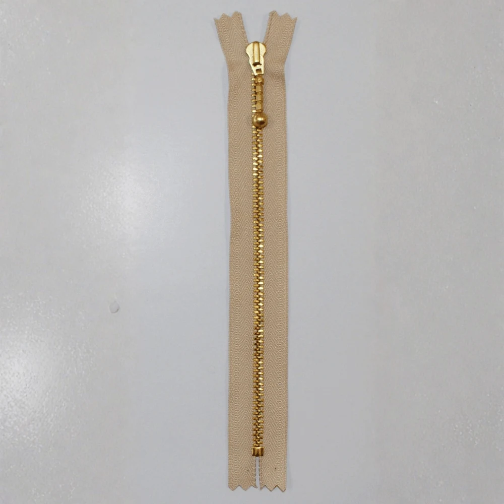 YKK fast glidelås i messing er en solid og stilren glidelås med et klassisk uttrykk. Den jevne funksjonen og holdbare konstruksjonen gjør den egnet til mange typer syprosjekter.