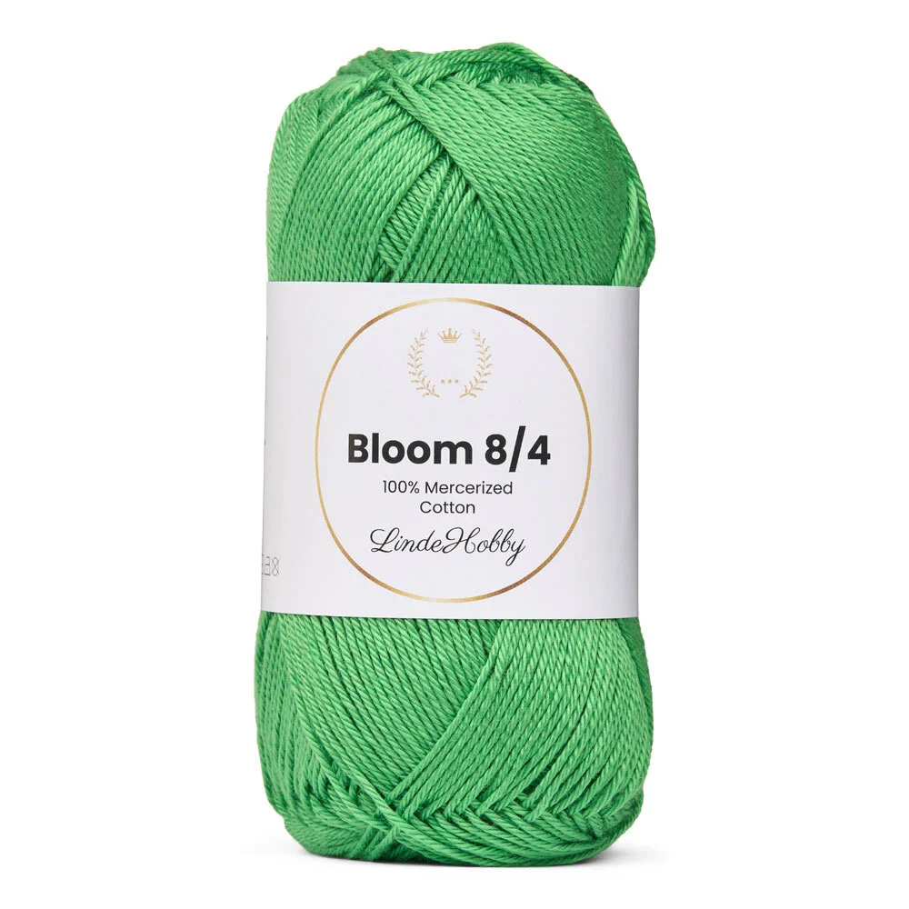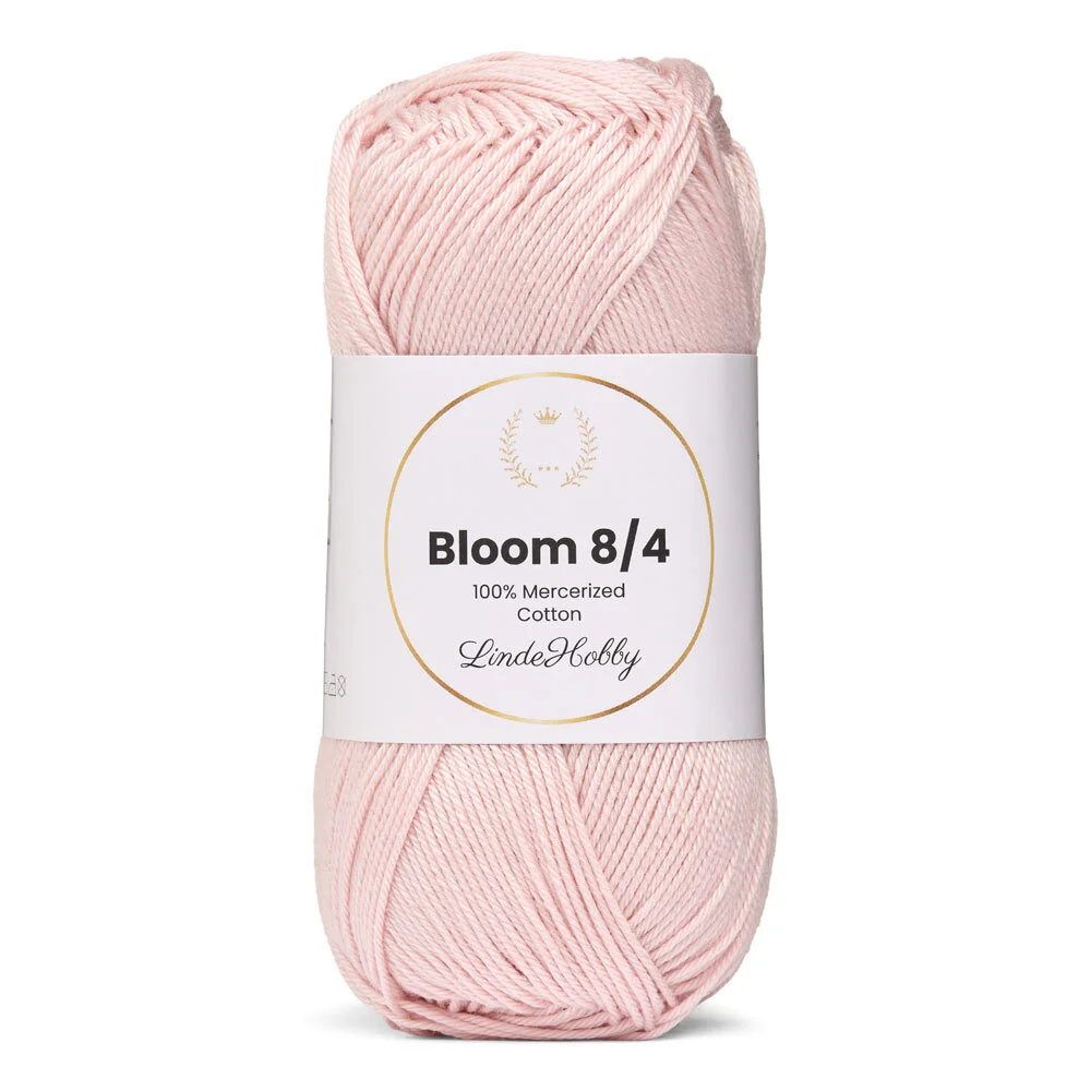 LindeHobby Bloom 8/4 Mercerized Cotton er et glansfullt og slitesterkt garn i 100 % mercerisert bomull. Det er den tynnere utgaven av det populære Bloom 8/8 og har samme elegante finish og høye kvalitet – perfekt til fine og detaljerte håndarbeidsprosjekter. Garnet finnes i et bredt spekter av vakre farger som gir deg kreativ frihet til både hekling og strikking.