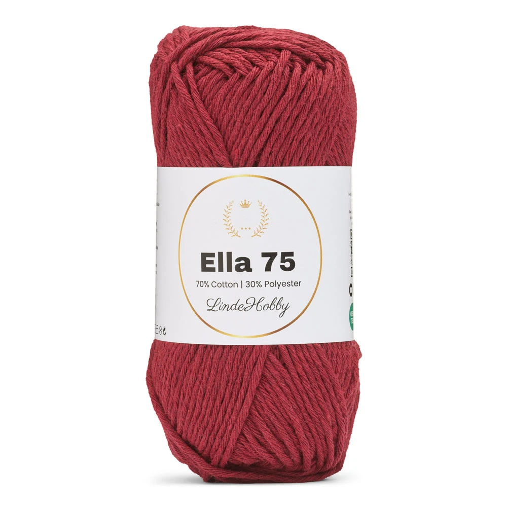 LindeHobby Ella 75 er et slitesterkt og allsidig garn som kombinerer 70% bomull med 30% polyester. Denne blandingen gir garnet en myk og naturlig følelse fra bomullen, samtidig som polyesteren tilfører ekstra styrke, fargeekthet og formstabilitet.