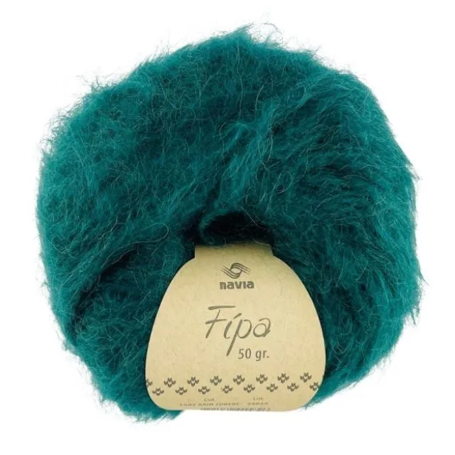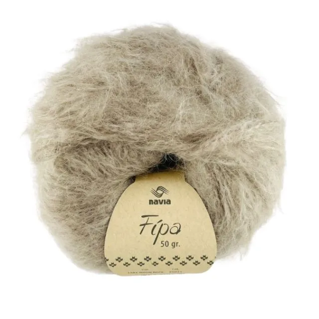 Navia Fípa er et luksuriøst og luftig garn med en vakker, fluffy struktur. Den høye andelen mohair gir en silkemyk overflate og et eksklusivt uttrykk, mens ullen bidrar med varme og nylon tilfører ekstra styrke. Kombinasjonen sikrer et lett garn med flott fylde og god holdbarhet.