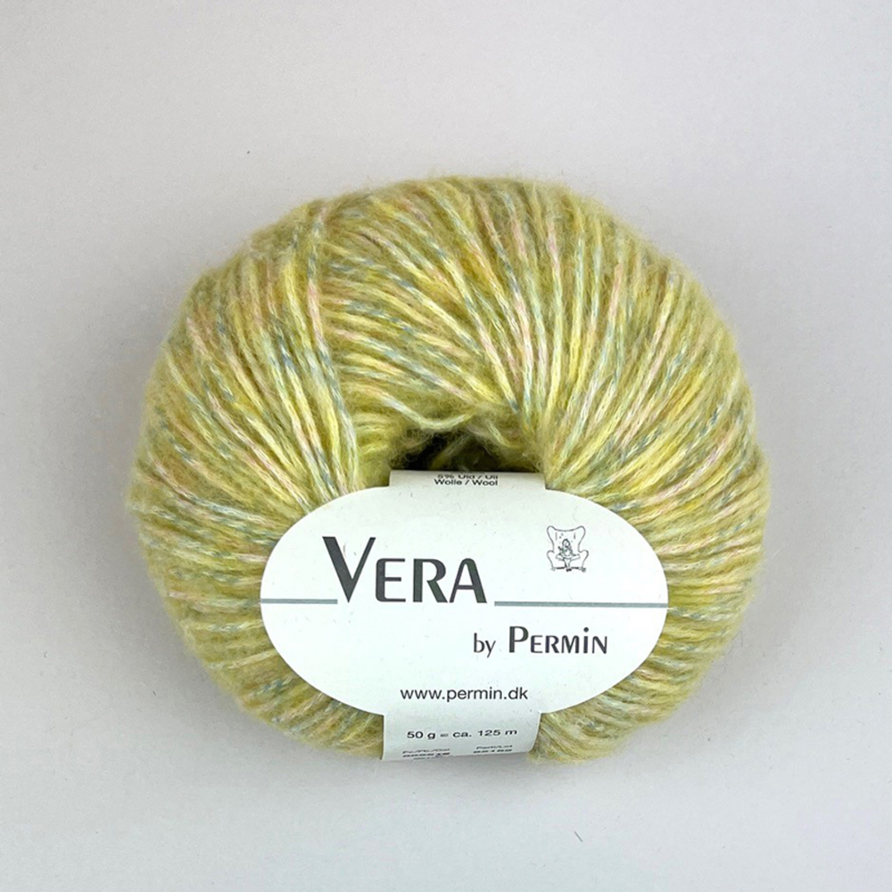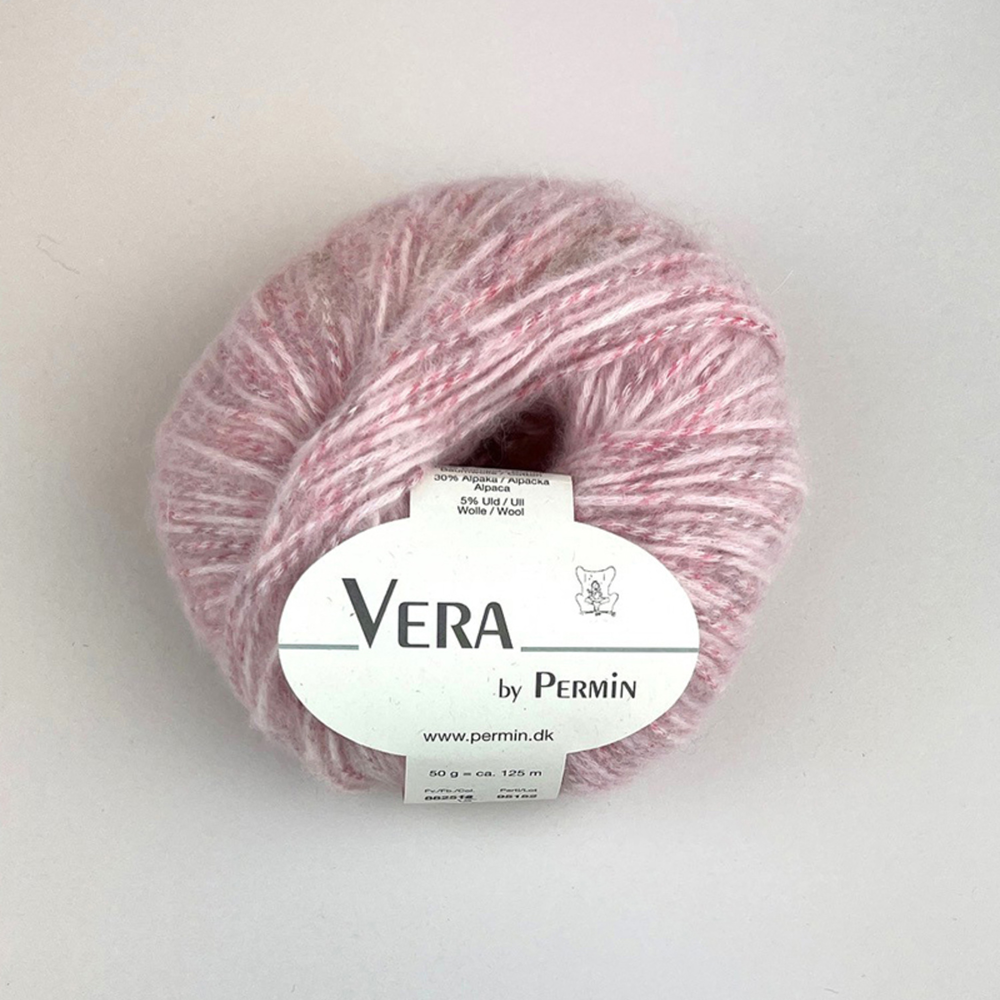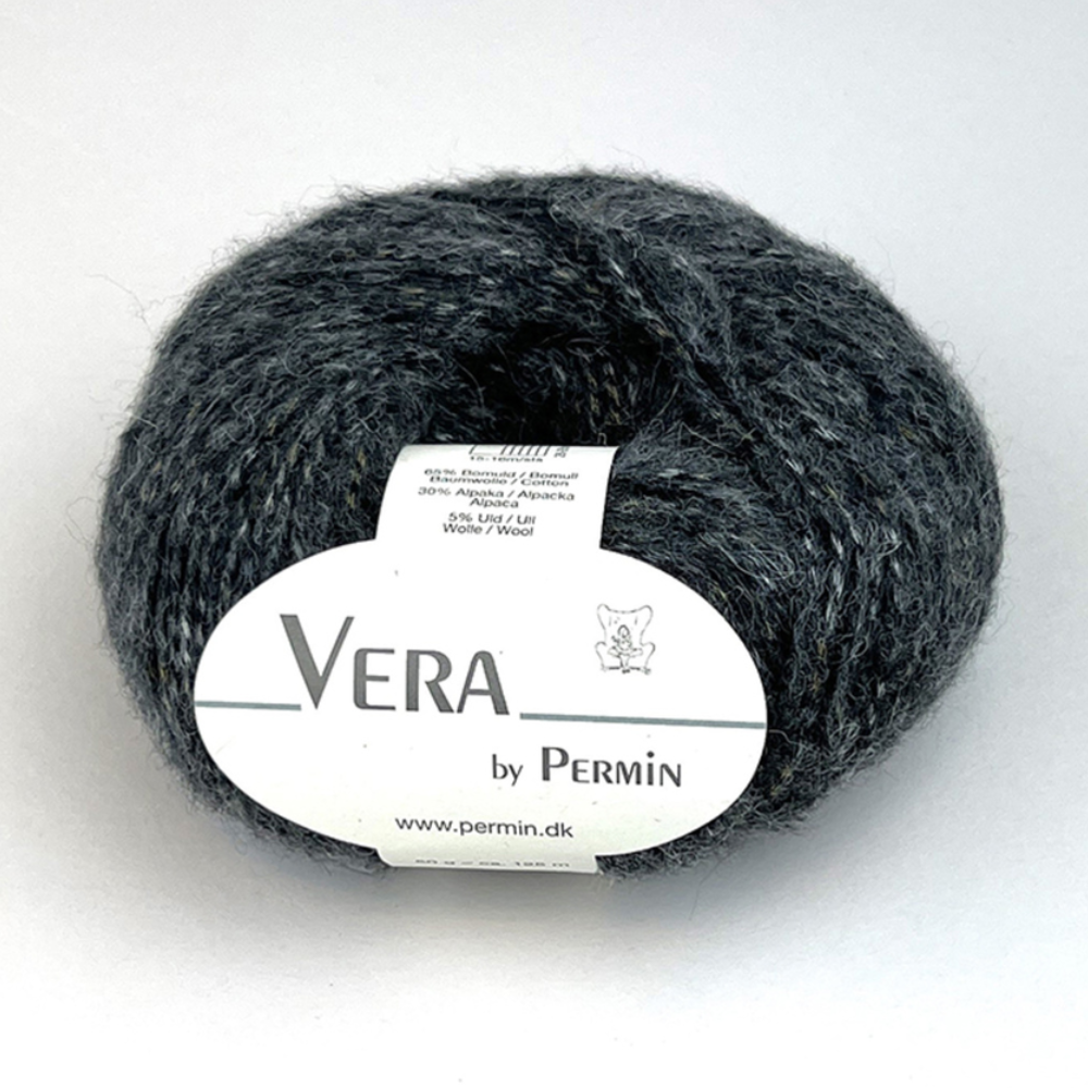 Permin Vera er et chainette-garn laget av naturlige fibre. I dette garnet er ull og alpakka nøye blåst inn i en kjede av bomull, noe som gir en lett, myk og elastisk struktur som føles behagelig mot huden. Garnet er produsert i Italia med fokus på bærekraft, miljø og dyrevelferd.