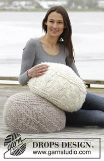 Strikket DROPS puff med 4 tråder " DROPS Snow" med rille og vendinger eller vrbord av. Kan også bearbeides i 2 tråder " DROPS Polaris ".