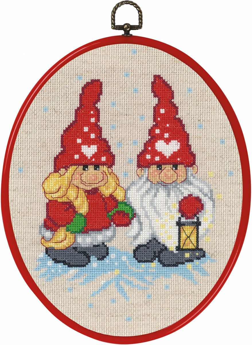 Opplev den magiske atmosfæren av vinter og jul med vårt sjarmerende broderisett 'Nissepar/lykte'. Dette nydelige motivet presenterer et vennlig nissepar i en varm omfavnelse, opplyst av en strålende lykt, mens de står i det snødekte landskapet. Detaljene i dette settet fremhever den koselige og festlige stemningen som passer perfekt til julens gleder.