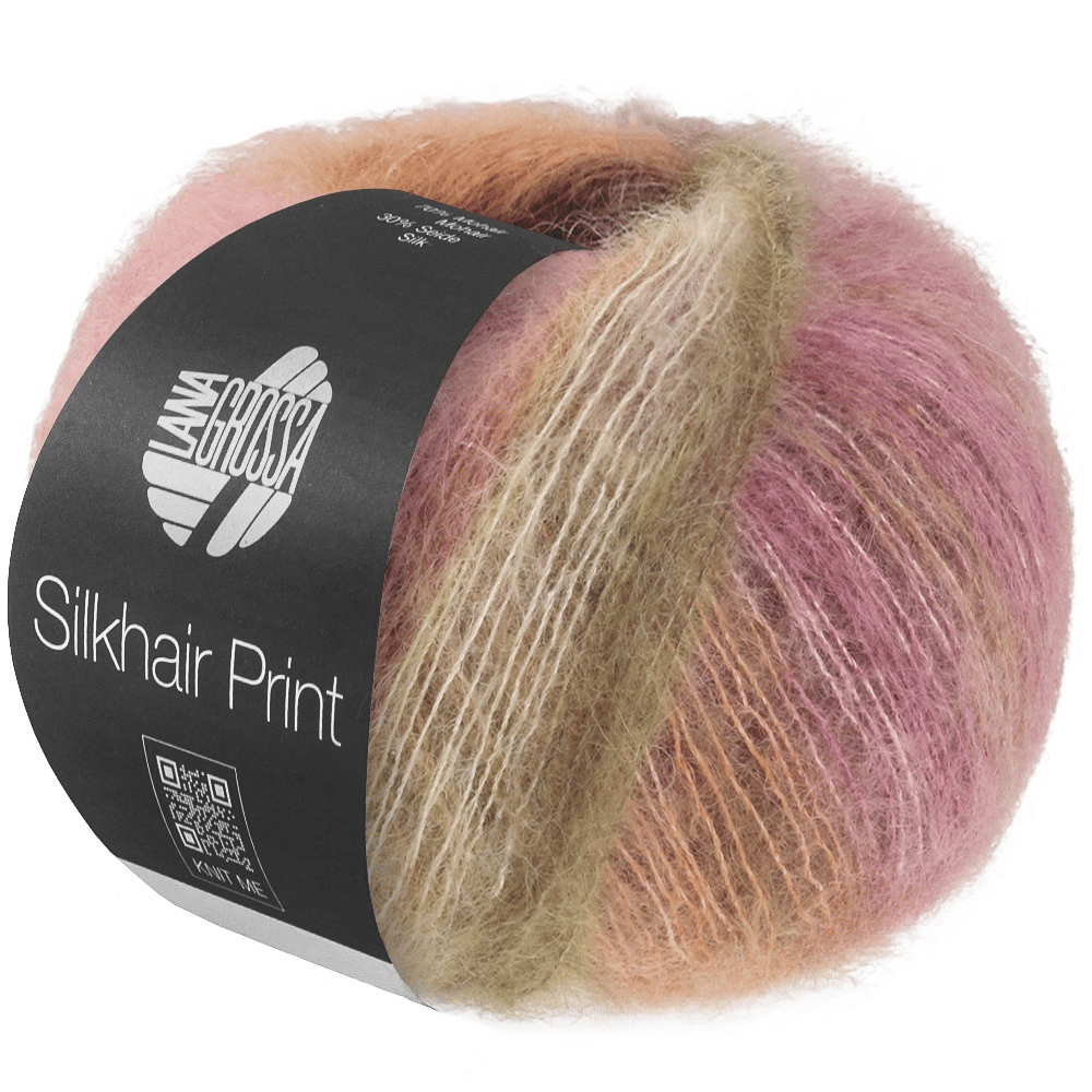 Lana Grossa Silkhair Print er en fargeskiftende versjon av det populære Silkhair-garnet. Med sine vakre fargeoverganger er det ideelt for å skape iøynefallende og unike strikkeprosjekter. Garnets herlige blanding av mohair og silke gir det en lett og luftig struktur som føles myk mot huden.