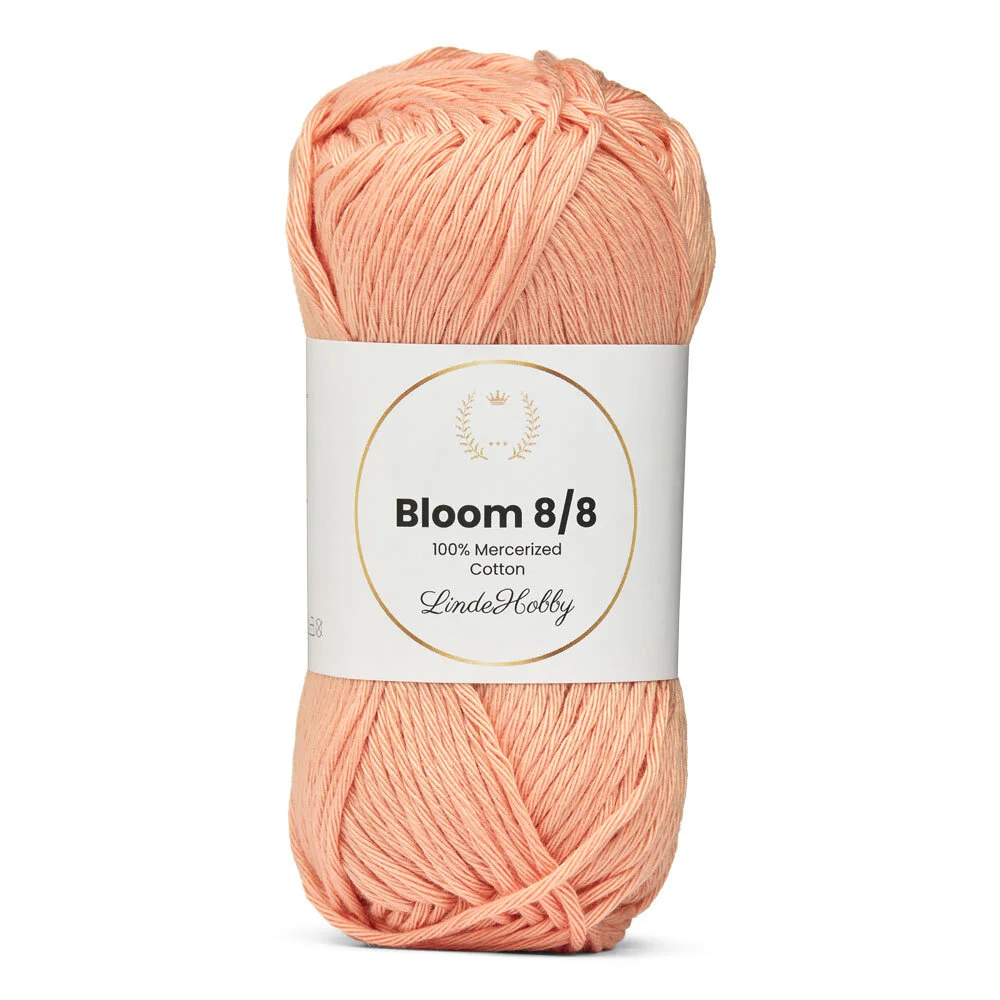 LindeHobby Bloom 8/8 Mercerized Cotton er et slitesterkt og glansfullt garn i 100% mercerisert bomull. Den spesielle behandlingen gir garnet en vakker, blank overflate og ekstra holdbarhet. Det passer perfekt til både klær og interiørprosjekter hvor man ønsker et elegant og jevnt resultat.