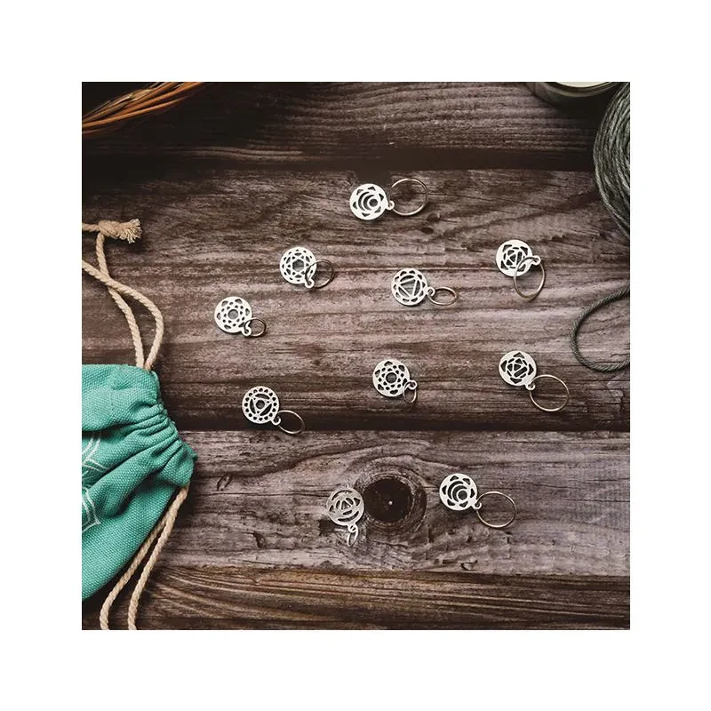 Elegant sett med maskemarkører med syv symbolske chakra-design, i sølvbelagt finish. Perfekt for mindful strikking og nøyaktig markering.