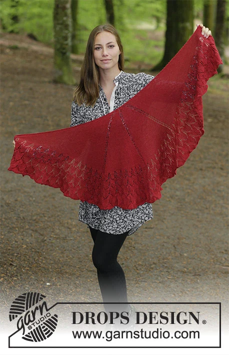 Strikket sjal med kant i hullmønster. Arbeidet er strikket i DROPS BabyAlpaca Silk