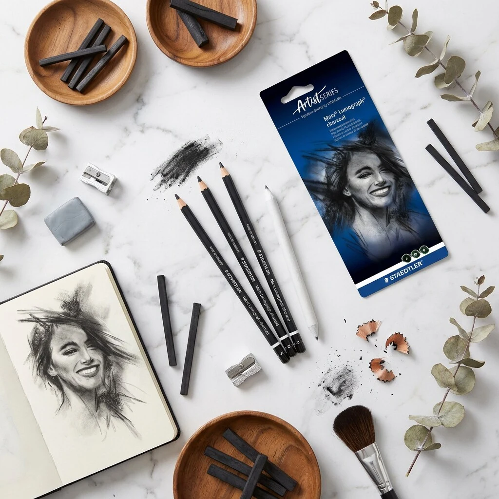 Når du vil ha kull som gir dype svarte nyanser og samtidig er enkelt å styre som en blyant, er Mars® Lumograph® 100C et solid valg. Du får assorterte grader og en praktisk blender, slik at du kan jobbe både detaljert og fritt med toner. Et enkelt sett som gjør det lett å komme i gang – og tilfredsstillende å finpusse teknikken din.